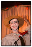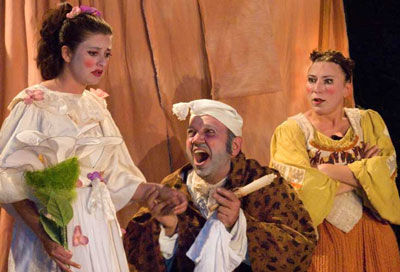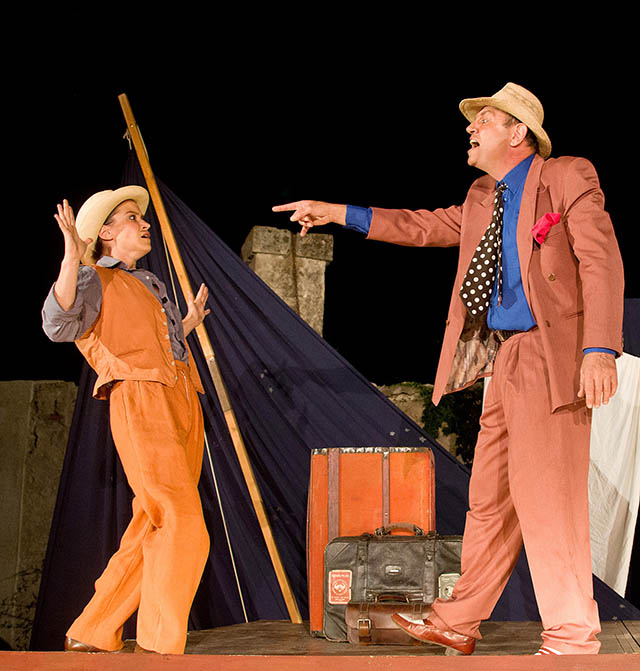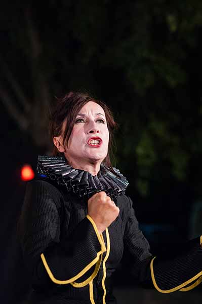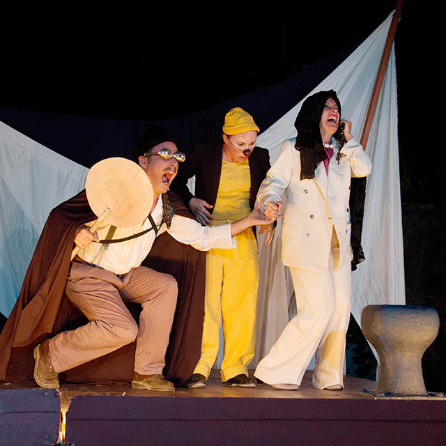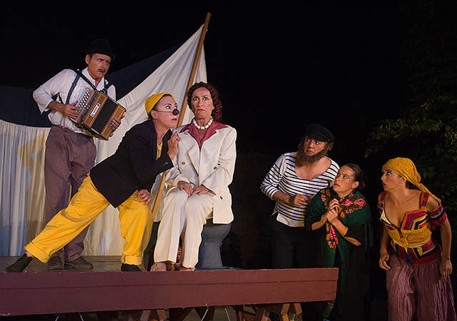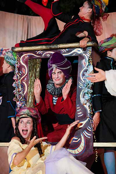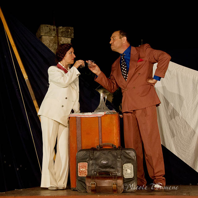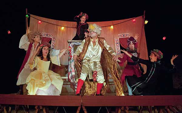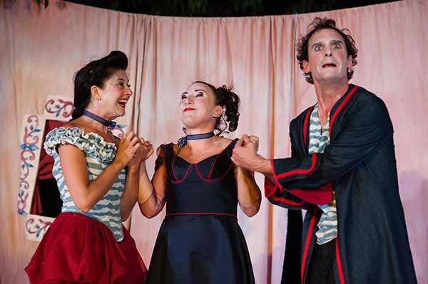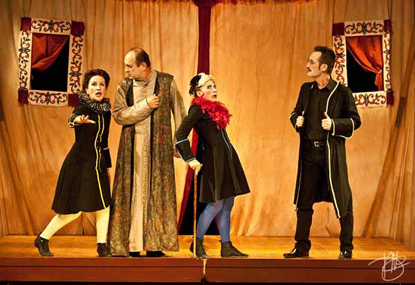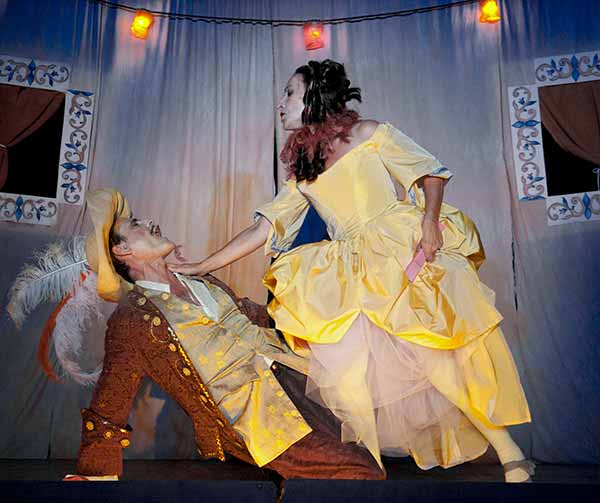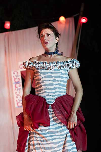 Un spectacle sur tréteaux pour comédiens, clowns, artiste de cirque, chanteuse et musicien.