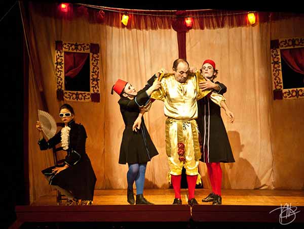 S’appuyant sur l’énergie du « jeu des commedianti », dans l’esprit de la Commedia dell’Arte (masque, chant, musique, improvisation, escrime…) intégrant le public au déroulement trépidant de l’action, le Collectif Théâtre Lila et l’Illustre Théâtre vous proposent un « Cocu imaginaire d’après Molière ! » décoiffant et librement interprété dans la tradition revisitée du théâtre de tréteaux.